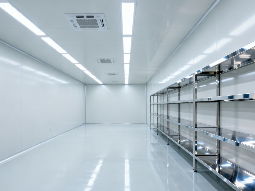 材料選型是施工的基礎,需兼顧潔凈性、耐用性與合規性。圍護結構優先選用A級防火彩鋼板,芯材導熱系數≤0.03W/(m?K),表面光滑無顆粒脫落,拼接處采用企口式設計,避免縫隙積塵;地面材料按產業需求選擇:電子車間用防靜電環氧自流平,醫藥車間用無縫PVC卷材,新能源車間用耐酸堿涂層,確保適配生產環境。凈化設備需選用具備CMA認證的產品,高效過濾器過濾效率≥99.97%(針對0.3μm微粒),風管采用304不銹鋼材質,內壁電解拋光處理(粗糙度Ra≤0.4μm),減少微粒附著。