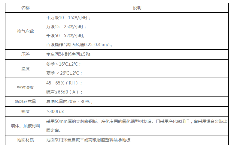 潔 凈 度:千級(jí)、萬(wàn)級(jí)、十萬(wàn)級(jí)