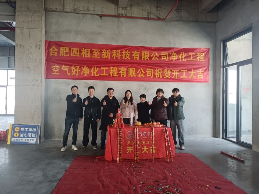 伴隨著喜慶的彩花與熱烈的掌聲,合肥四相至新科技有限公司凈化工程的開工儀式圓滿禮成。