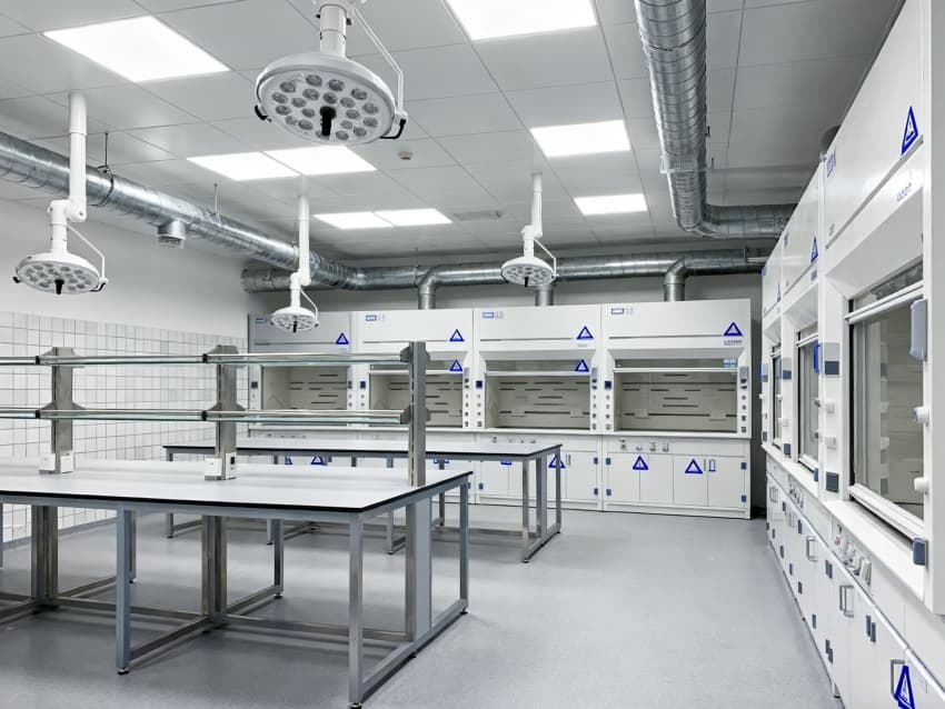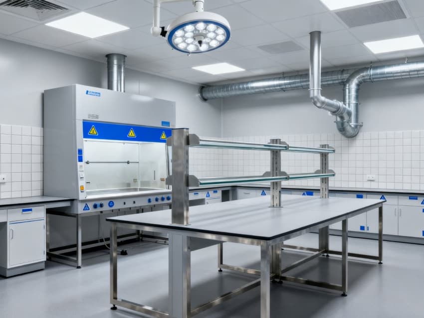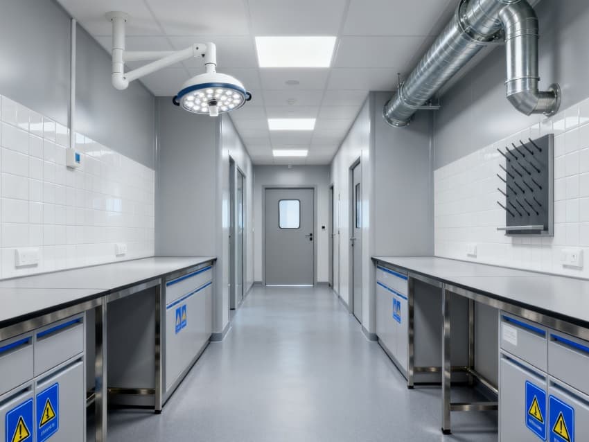 本生化研究實(shí)驗(yàn)室凈化工程嚴(yán)格遵循ISO7級(jí)潔凈標(biāo)準(zhǔn),將實(shí)驗(yàn)空間科學(xué)劃分為四大核心功能區(qū)域:樣品前處理區(qū)配備通風(fēng)櫥、震蕩儀等預(yù)處理設(shè)備,采用負(fù)壓設(shè)計(jì)防止交叉污染;試劑配制區(qū)設(shè)有獨(dú)立的天平室與超純水系統(tǒng),通過溫濕度智能調(diào)控系統(tǒng)將環(huán)境參數(shù)穩(wěn)定控制在±1℃與45%-60%RH;精密檢測(cè)區(qū)配置防震臺(tái)與電磁屏蔽裝置,可滿足高效液相色譜、質(zhì)譜儀等精密儀器的運(yùn)行需求;無菌操作區(qū)配備層流凈化工作臺(tái)與生物安全柜,配合動(dòng)態(tài)浮游菌監(jiān)測(cè)系統(tǒng),確保實(shí)驗(yàn)環(huán)境達(dá)到百級(jí)潔凈度標(biāo)準(zhǔn)。各功能區(qū)通過氣密式緩沖間與機(jī)械互鎖傳遞窗形成物理隔離,構(gòu)建起三級(jí)防護(hù)屏障。在保障蛋白質(zhì)分離純化、核酸提取擴(kuò)增等常規(guī)實(shí)驗(yàn)高效開展的同時(shí),還專門設(shè)計(jì)了酶活性檢測(cè)專用恒溫恒濕實(shí)驗(yàn)室,采用獨(dú)立的凈化空調(diào)系統(tǒng)與UPS不間斷電源,可支持對(duì)環(huán)境參數(shù)高度敏感的高精度研究項(xiàng)目。此外,工程特別設(shè)置雙通道應(yīng)急處理系統(tǒng),包含緊急洗眼裝置、消防噴淋系統(tǒng)與防化物資儲(chǔ)備間,配合逃生路線熒光標(biāo)識(shí)與應(yīng)急照明系統(tǒng),全方位保障實(shí)驗(yàn)人員安全與科研數(shù)據(jù)完整。?