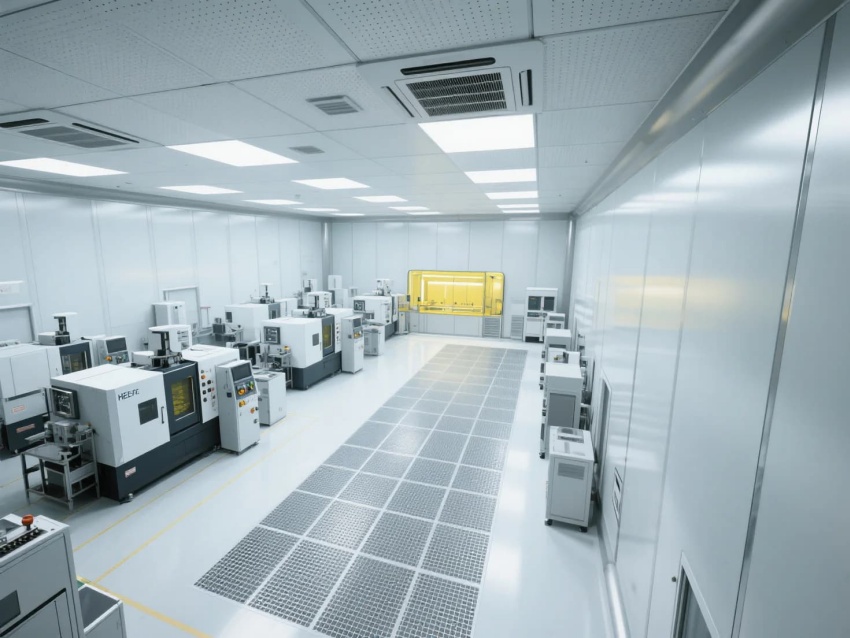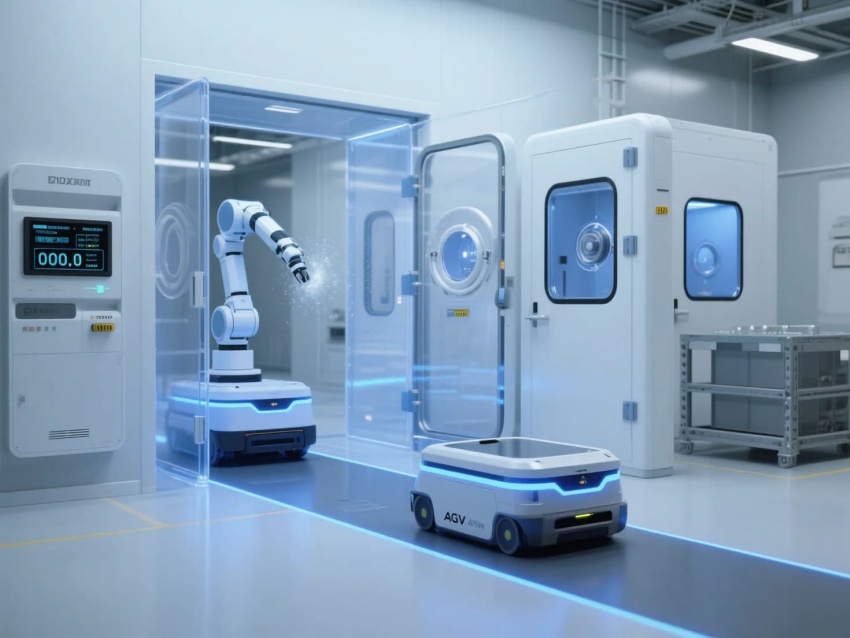 模塊化功能單元:劃分微米級加工區(qū)(黃光照明)、光學檢測區(qū)(黑箱設(shè)計)、物料緩存區(qū)(負壓隔離)