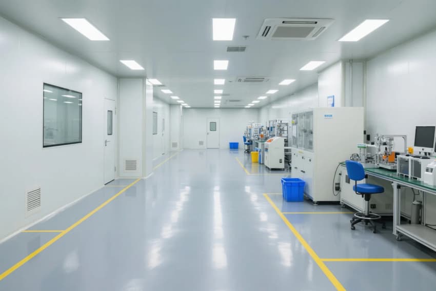 智能控制系統(tǒng)集成環(huán)境監(jiān)測(cè)(溫濕度/潔凈度/壓差)、設(shè)備聯(lián)動(dòng)和能源管理三大模塊,通過(guò)墻裝LED智能看板實(shí)現(xiàn)數(shù)據(jù)可視化。照明系統(tǒng)采用600x1200mm潔凈平板燈,照度維持800Lux±10%,重點(diǎn)工位增設(shè)局部黃光照明。工程整體通過(guò)模塊化設(shè)計(jì)、智能化控制和標(biāo)準(zhǔn)化施工,實(shí)現(xiàn)電子光伏廠房在潔凈度、能效比和生產(chǎn)效率的最優(yōu)平衡。