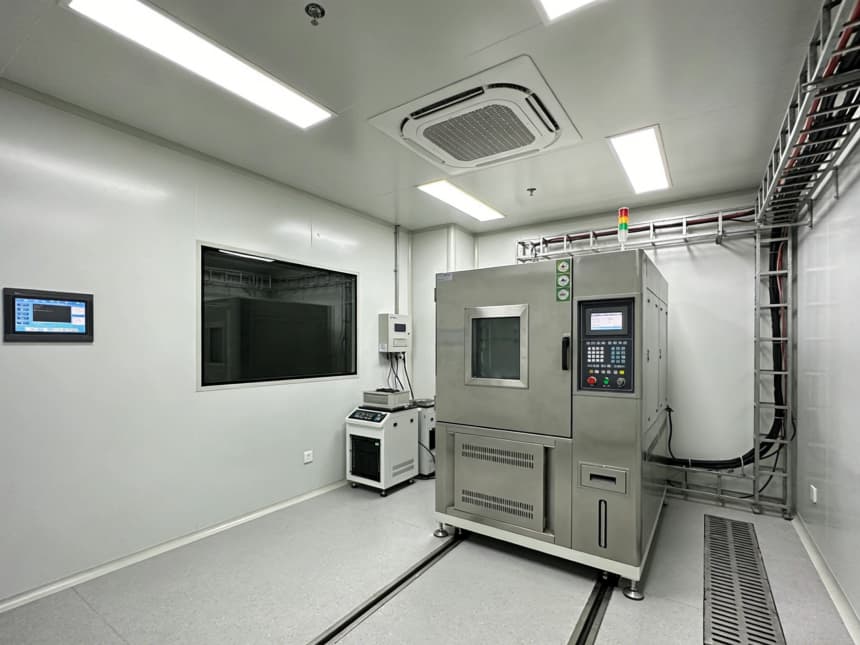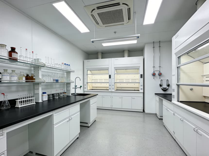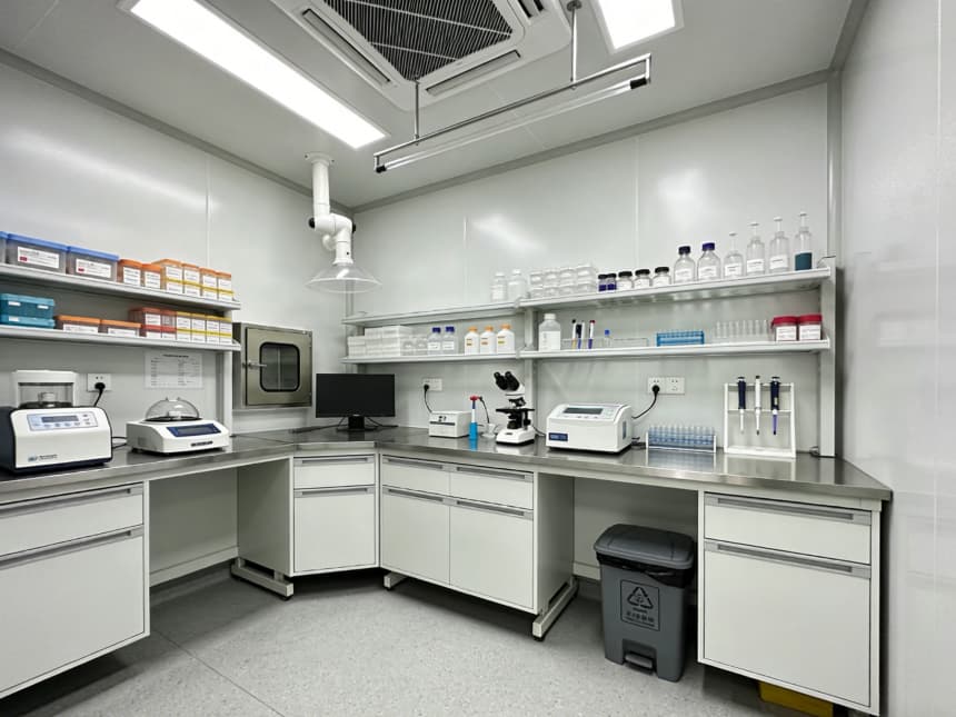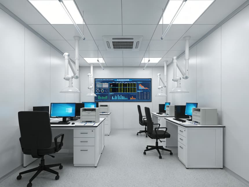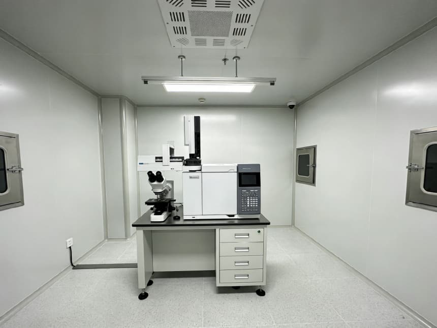 內部檢測空間均以淺灰色耐磨地坪搭配白色無縫潔凈墻面,視覺整潔且適配檢測核心需求。淺灰色地面選用高硬度環(huán)氧材質,抗壓耐磨、抗污易清潔,可耐受檢測過程中各類試劑殘留與設備搬運磨損;白色墻面采用環(huán)保抗菌涂層,平整度高、反光均勻,搭配嵌入式防眩光照明,為精密檢測提供清晰穩(wěn)定的視覺環(huán)境,減少誤差干擾。
