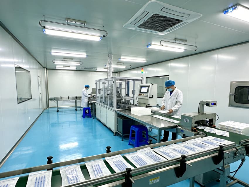 白色墻面采用食品級潔凈抗菌涂層,推行無縫拼接與高精度找直工藝,陰陽角采用R50圓弧倒角設計,徹底消除清潔死角,潔凈度穩(wěn)定達到Class 7級標準。廠房科學劃分無菌裝配區(qū)、滅菌區(qū)、檢測區(qū)等核心區(qū)域,各區(qū)域配備獨立層流凈化與負壓防護系統(tǒng),裝配區(qū)預留恒溫恒濕調控接口,滅菌區(qū)設置專用物料傳遞通道,全方位保障生產全流程的無菌性與合規(guī)性,為高品質無菌醫(yī)療器械生產筑牢環(huán)境基礎。