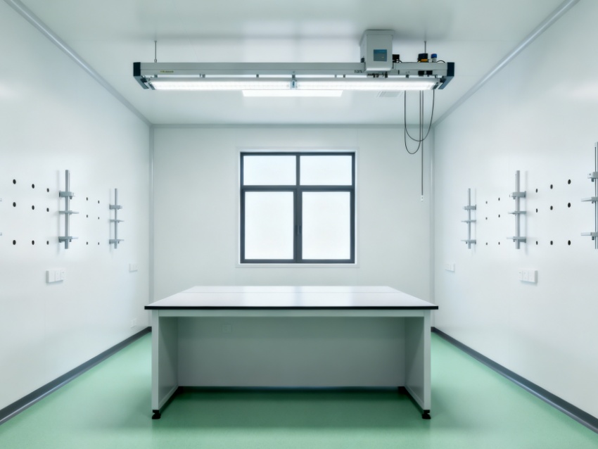 本植物學實驗室,整體風格簡潔專業(yè),統(tǒng)一采用淺綠色環(huán)保耐磨地坪與白色抗菌墻面,既營造貼近植物研究的自然氛圍,又滿足科研實驗的潔凈需求。淺綠色地面為無毒環(huán)保材質(zhì),防滑耐污且易清潔,可耐受植物培養(yǎng)基質(zhì)、試劑殘留的反復擦拭;白色墻面搭配平整無縫設(shè)計,減少粉塵附著,搭配嵌入式護眼照明,為實驗操作提供清晰明亮的視覺環(huán)境。?