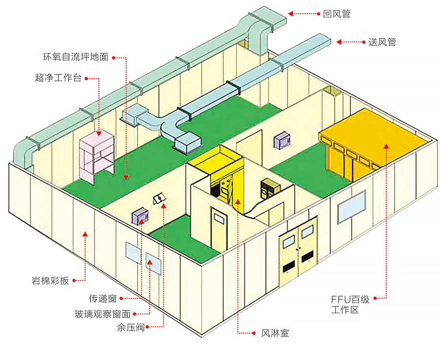 潔凈廠房亦名潔凈室、超凈間、無菌車間、凈化房等,定義為將一定空間范圍內(nèi)空氣中的微塵粒子,有害空氣,細(xì)菌等污染物排除,并將室內(nèi)之溫濕度、潔凈度、室內(nèi)壓差、氣流速度與氣流組織、噪音震動及照明、靜電等控制在一定范圍內(nèi),而所給予特別設(shè)計的密閉空間。