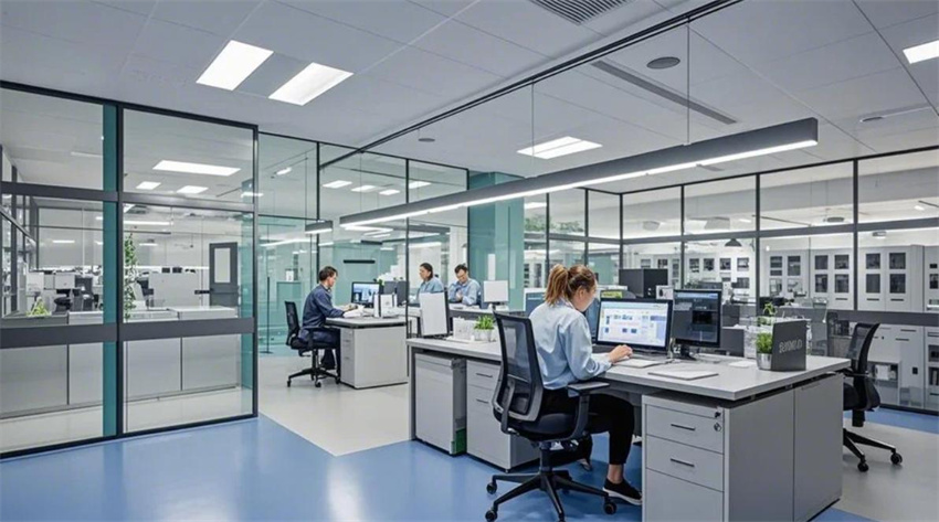 2000平方米化妝品車間,現代潔凈風格。車間分為生產區、包裝區、原料存儲區和辦公區。生產區占50%,包裝區占30%,原料存儲區占10%,辦公區占10%。生產區:防靜電環氧地坪(淺灰色),白色彩鋼板墻面和天花板,頂部高效過濾器(HEPA),不銹鋼工作臺,設備排列整齊。包裝區:自動化包裝流水線,地面為防靜電PVC地板(淺色)。原料存儲區:貨架整齊,溫濕度控制。辦公區:玻璃隔斷,現代簡約辦公桌。整體色彩:白色、淺灰色、淺綠色點綴。