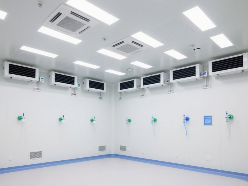 空氣凈化系統配備高效過濾器,通過精準氣流控制維持高潔凈度,為醫療操作提供無菌環境。空間布局科學,設置更衣區(配備不銹鋼潔凈柜),確保人員進入前的潔凈處理;各類醫療氣體接口(如氧氣、壓縮空氣)分區明確、標識清晰,滿足診療過程的氣體供應需求。